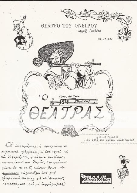 Κάποτε, τὰ μικρὰ παιδιὰ δυσκολεύονταν πολὺ νὰ ποῦν...τὸ ἐπώνυμό μου. Ἔτσι, μὲ βάφτισαν: ὁ...θεατράς! Αὐτό, μοῦ ἔδωσε μιὰν ἰδέα γιὰ μιὰ δραματικὴ κωμωδία ποὺ τὴν ἀφιέρωσα στὸν Θανάση Βέγγο - καὶ γίναμε μάλιστα καὶ πολὺ φίλοι.Πρώτη παράσταση: 7ος Κρατικός Παιδικὸς Σταθμὸς Περιστερίου, 14.1.1988. Ἀκολούθησαν ἄλλες 210, ἐναλλὰξ μὲ τὸ "Μαμζὲλ Κλωτσοσκοῦφι" (315 παραστάσεις).
